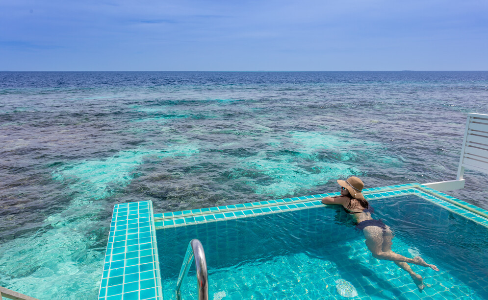 물위에 지어진 워터빌라에서 스노클링 가능한 라군에 바로 들어갈 수 있는 꿈의 휴양지입니다.