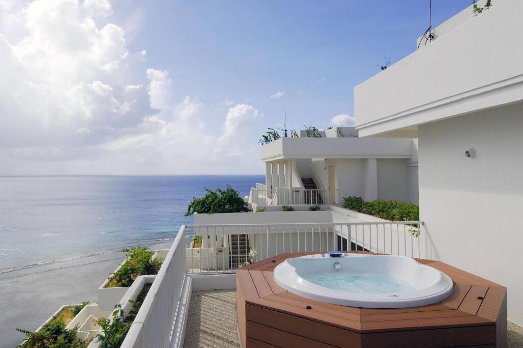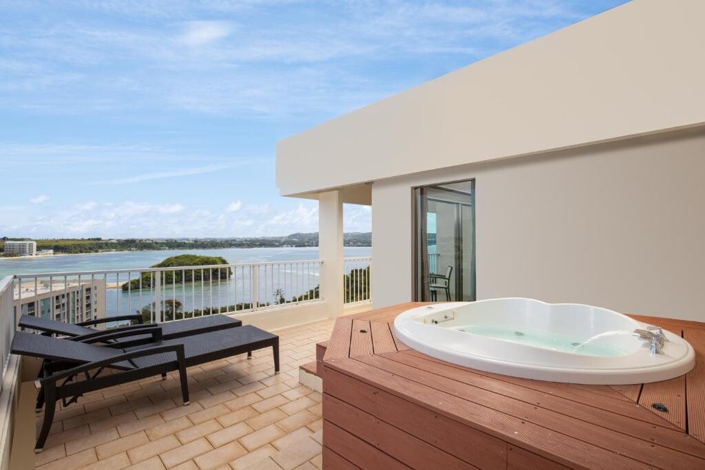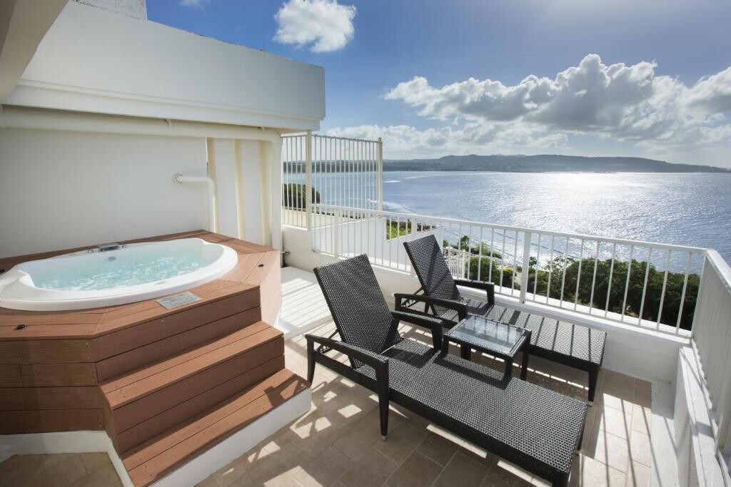 필리핀해와 태평양의 전망을 자랑하는 이 5성급 럭셔리 리조트는 섬의 스카이라인의 전망이 보이는 인피니티 풀을 갖춘 널찍한 3층 구조의 라군을 자랑합니다. 야외 수영장 2개, 피트니스 센터, 레스토랑 5개, 풀 바도 마련되어 있습니다.