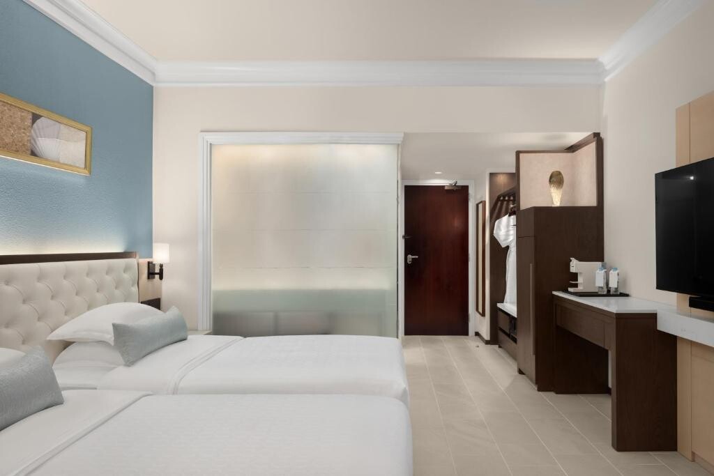 괌 프리미어 아웃렛, 골프장, 수상 레저 시설이 가까운 거리에 있습니다. 각 객실에는 목욕 가운, 슬리퍼, 고급 편의 용품이 마련된 전용 욕실이 딸려 있으며, 미니바와 커피 메이커도 마련되어 있습니다.