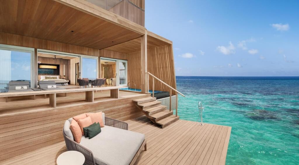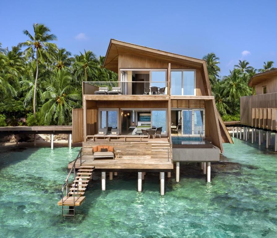 물위에 지어진 워터빌라에서 스노클링 가능한 라군에 바로 들어갈 수 있는 꿈의 휴양지입니다.