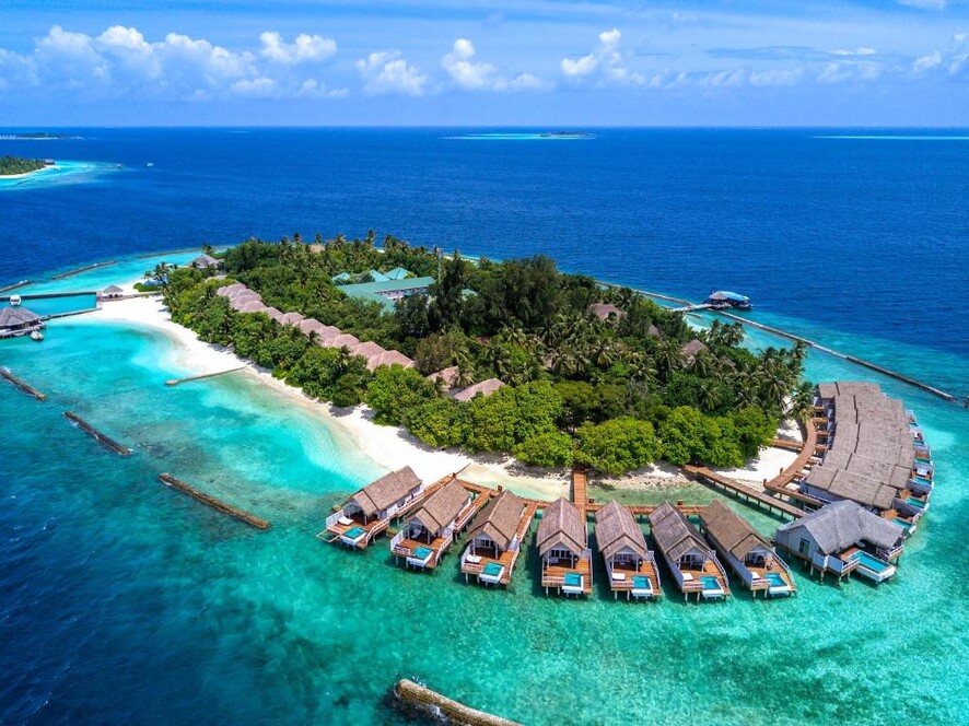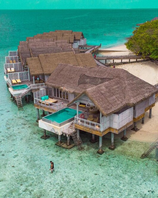물위에 지어진 워터빌라에서 스노클링 가능한 라군에 바로 들어갈 수 있는 꿈의 휴양지입니다.