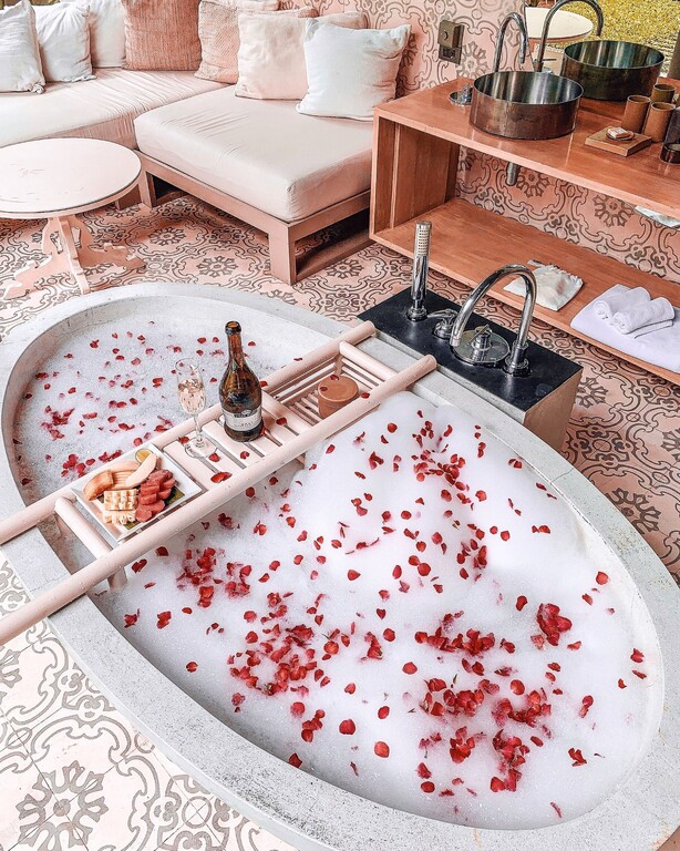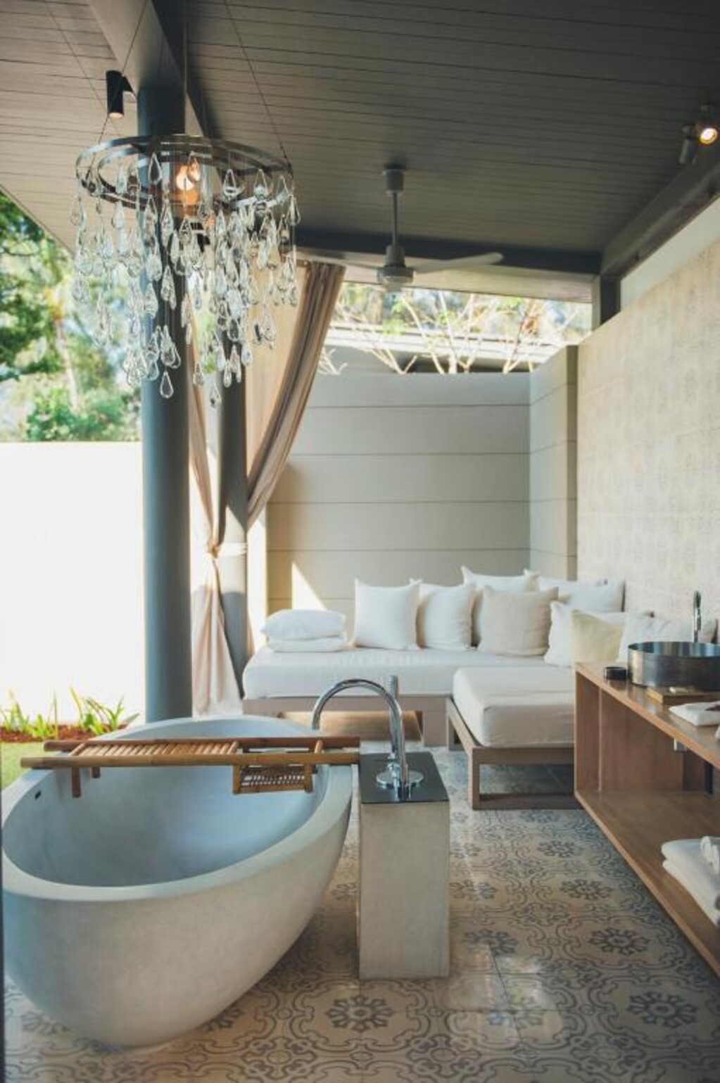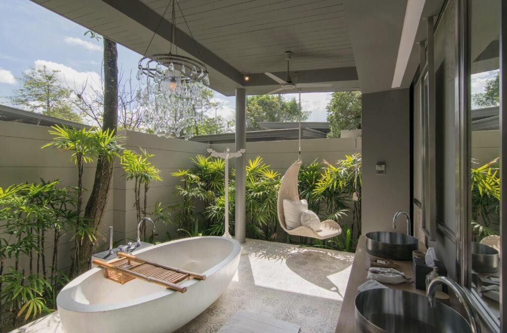 빌라에 마련된 야외 욕실에서는 수영장을 바라보며 독립형 욕조를 이용할 수 있습니다. 무료 Wi-Fi도 제공됩니다.
