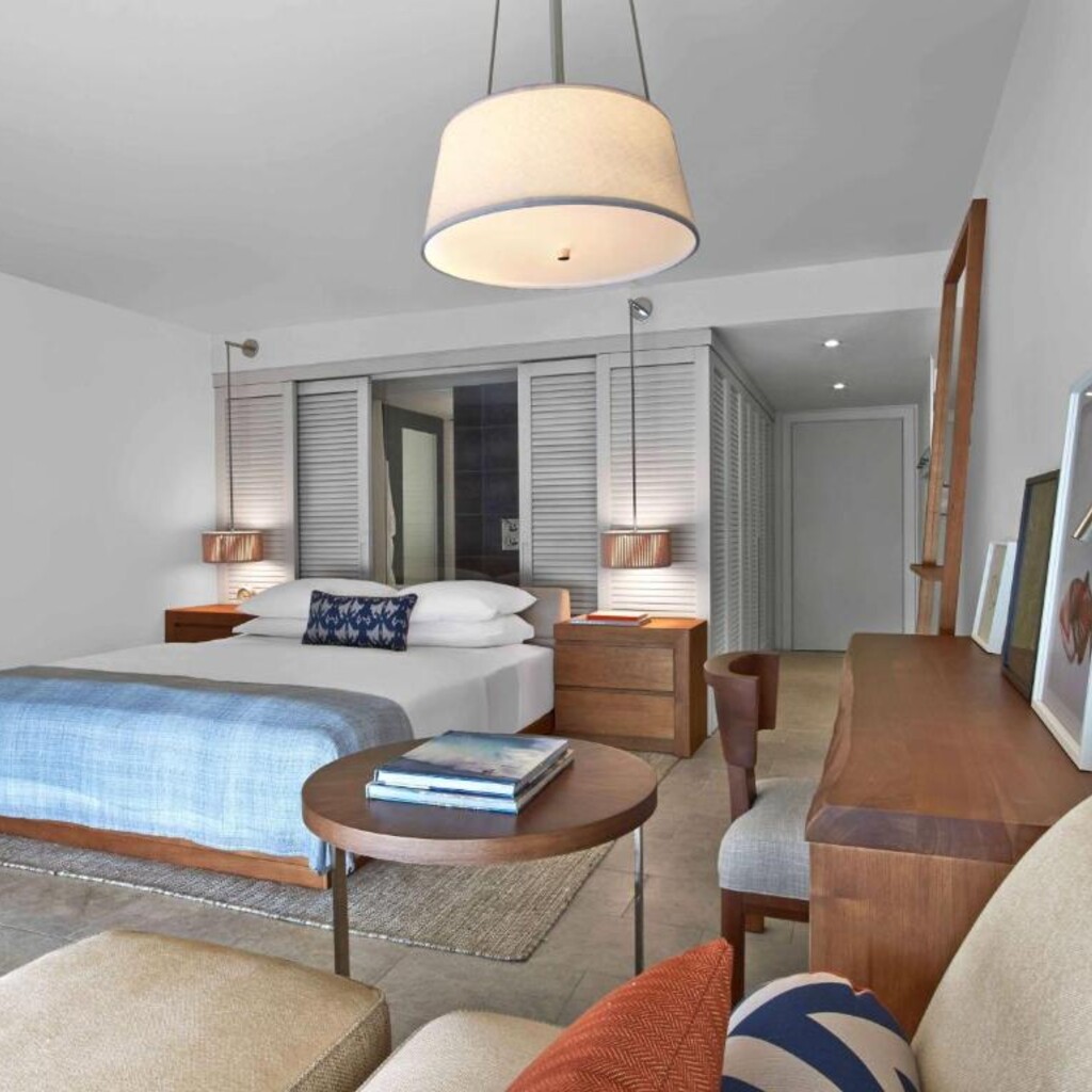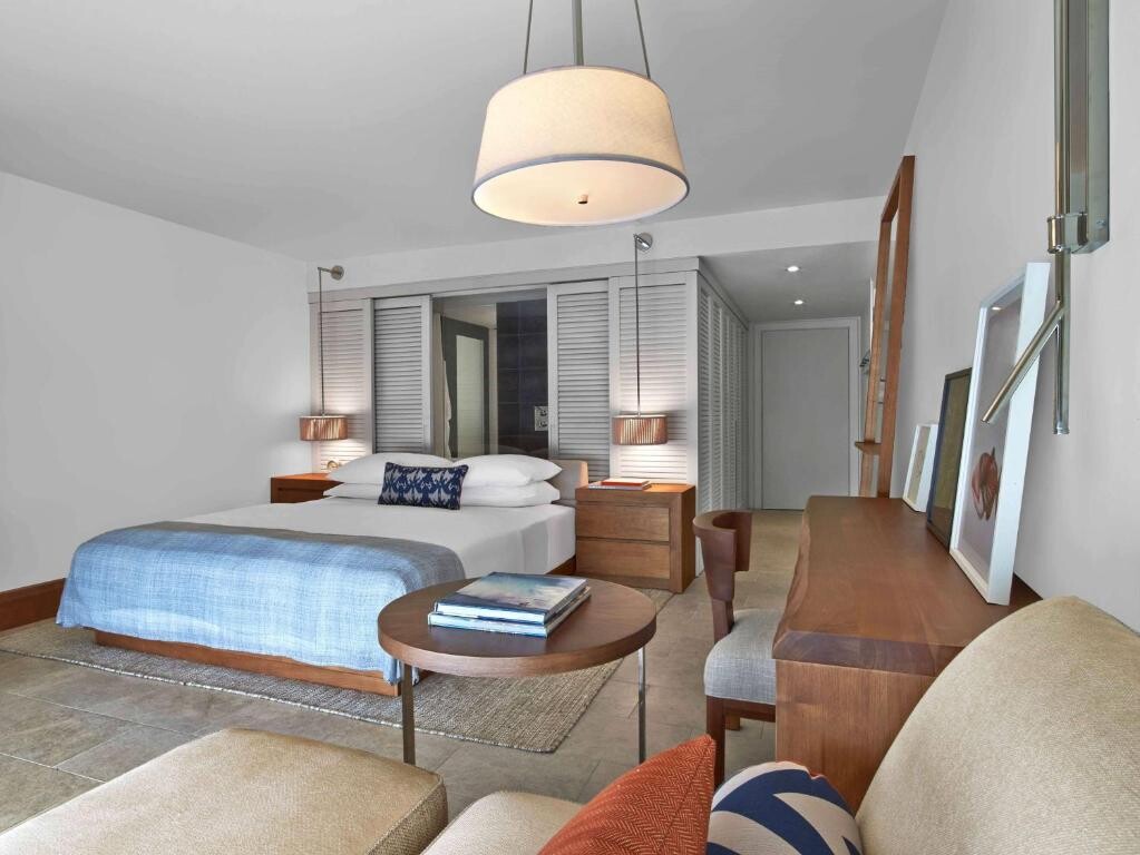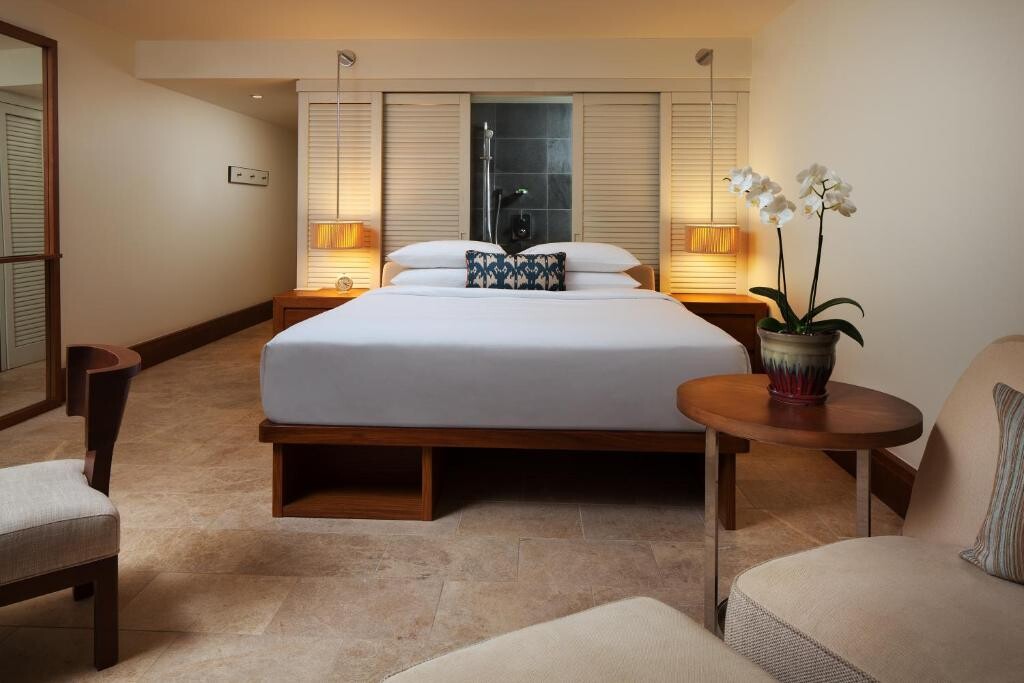 각 객실은 전용 발코니, 40인치 평면 케이블 위성 TV, 무료 무알코올 음료와 스낵이 구비된 미니바, 커피 머신을 갖추고 있습니다. 실내 욕실에는 목욕 가운과 레인 샤워기가 구비되어 있습니다. 스위트룸에는 별도의 거실 공간이 있습니다. 빌라에는 주방이 있으며, 전용 온수 욕조 혹은 플런지 풀도 마련되어 있습니다.