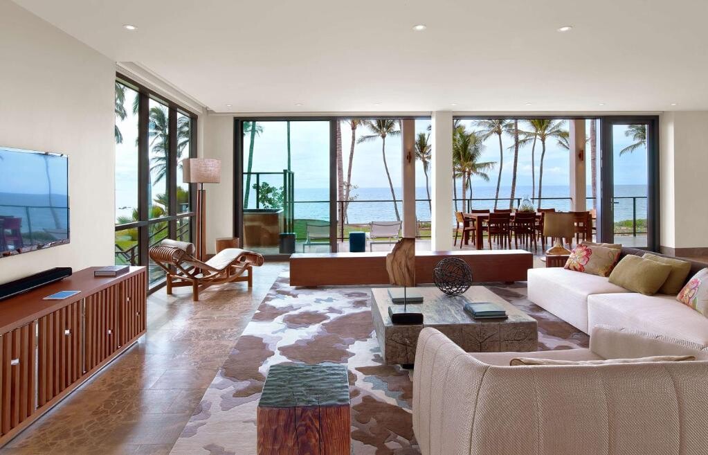 아이언 셰프에 출연한 마사하루 모리모토의 레스토랑인 Morimoto Maui에서는 일식 및 미국식 퓨전 요리와 신선한 현지 재료를 사용한 스페셜 칵테일을 선보입니다. 2개의 풀 사이드 바와 룸서비스도 이용 가능합니다.