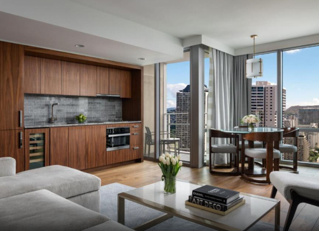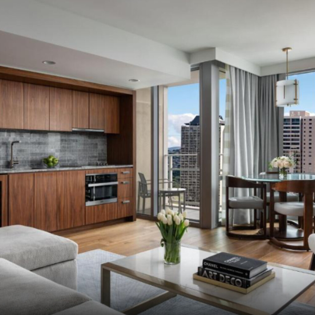 리츠칼튼 레지던스 와이키키 비치는 해변에서 도보로 8분 거리에 있습니다. 리츠칼튼 레지던스 와이키키 비치는 집처럼 편안한 환경과 리조트 편의시설을 동시에 즐길 수 있는 와이키키에서 가장 돋보이는 고급 리조트입니다. 오아후섬의 첫 번째 리츠칼튼 숙소인 이 리조트는 미식 주방과 간이 주방, 프리미엄 브랜드 세탁기와 건조기 등 다양한 주거용 편의시설을 갖춘 552개의 바다 전망 객실 및 스위트룸을 보유하고 있습니다. 섬에서 가장 많은 수의 호텔 럭셔리 스위트룸을 자랑하는 이 리조트에는 246개의 스위트룸이 마련되어 있습니다.