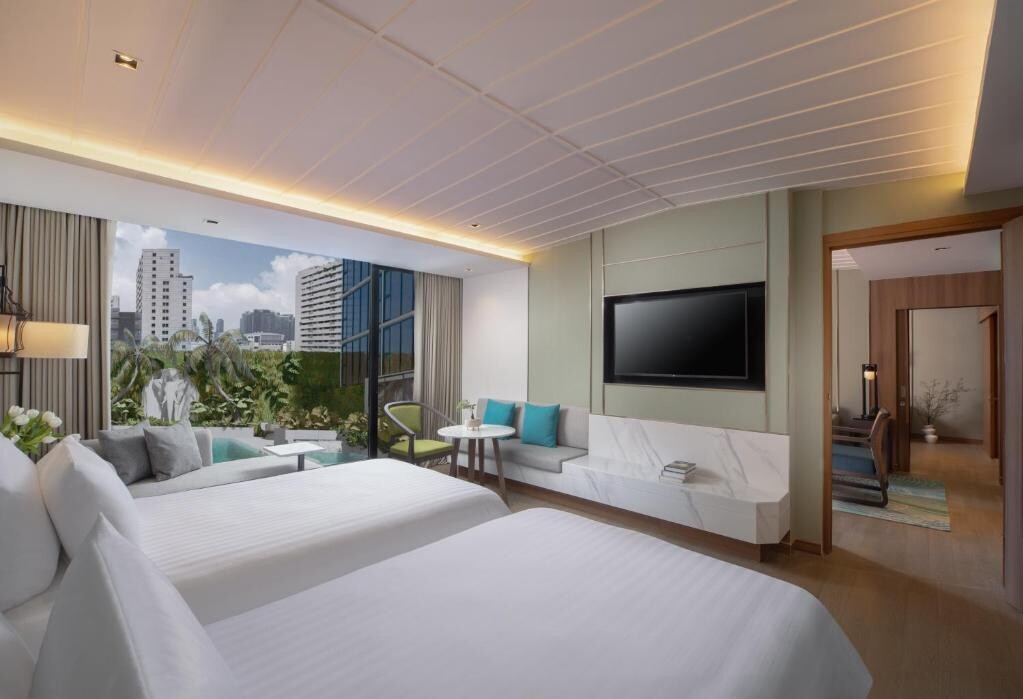 방콕에 자리한 Nysa Hotel Bangkok Sukhumvit 11에서는 야외 수영장, 무료 전용 주차장, 피트니스 센터, 정원 등을 이용하실 수 있습니다. 숙소는 센트럴 엠버시에서 1.8km 거리에 있습니다. 이 숙소에는 무료 Wi-Fi를 비롯해 레스토랑, 룸서비스, 24시간 프런트 데스크 등이 마련되어 있습니다. 투숙객은 바에서 음료를 주문할 수 있습니다. Nysa Hotel Bangkok Sukhumvit 11의 객실에는 에어컨, 옷장, 주전자, 냉장고, 미니바, 안전 금고, 평면 TV 등이 마련되어 있습니다. 전용 욕실에는 비데 등이 구비되어 있습니다. 일부 객실에는 전자레인지 등을 갖춘 간이 주방이 마련되어 있습니다. 숙소의 모든 객실에는 침대 린넨, 수건 등이 마련되어 있습니다. 숙소에서 매일 뷔페, 단품 요리(à la carte) 또는 유럽식 조식을 즐겨보세요. Nysa Hotel Bangkok Sukhumvit 11에는 일광욕용 테라스 등의 편의시설이 마련되어 있습니다. Nysa Hotel Bangkok Sukhumvit 11에서 2.4km 거리에는 아마린 플라자, 2.4km 거리에는 엠포리움 백화점 등의 명소가 있습니다. 돈므앙 국제공항은 25km 거리에 있으며, 숙소는 무료 셔틀 서비스를 제공합니다.