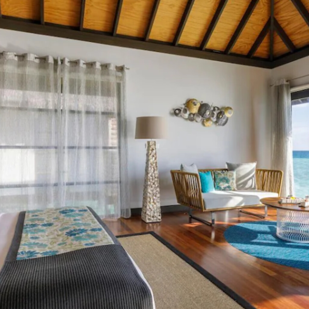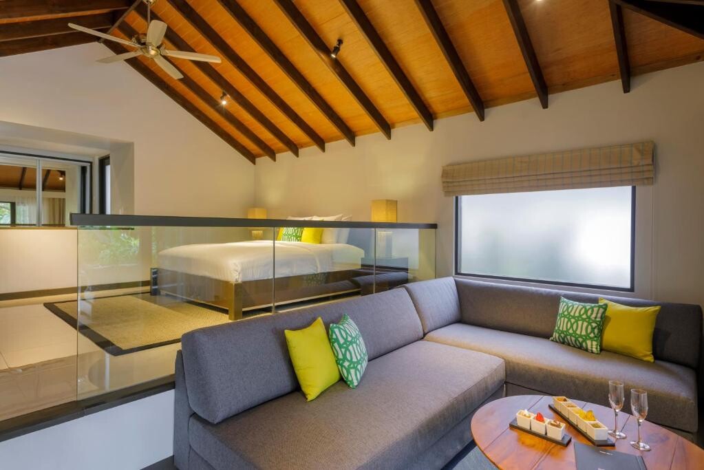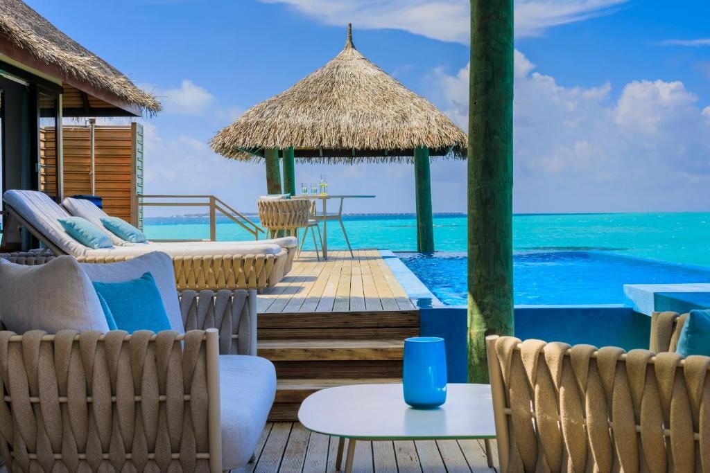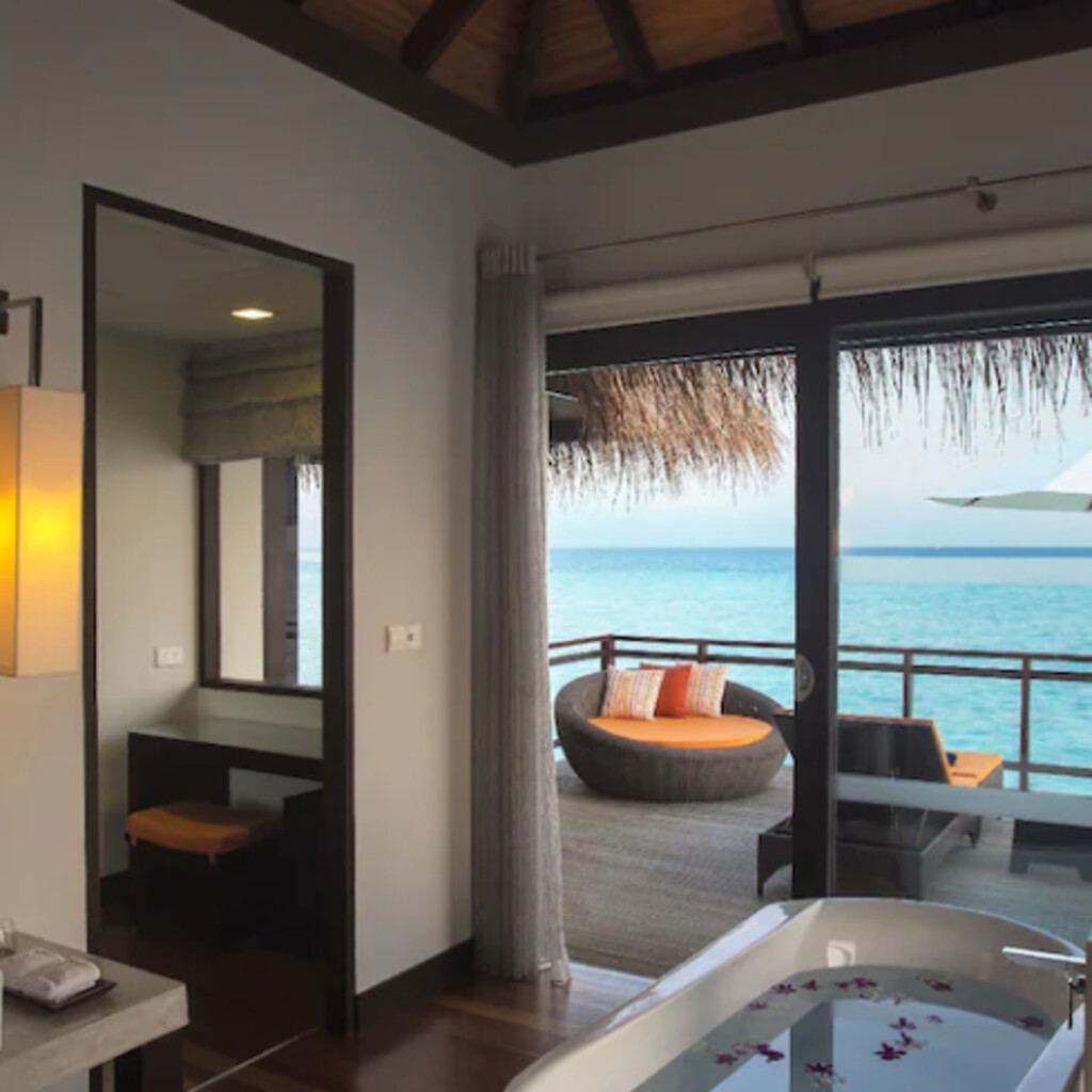 수상 파빌리온에서 스파 트리트먼트를 받으며 휴식을 취하거나 몰디브 보트에 탑승하여 승무원이 전통적인 방법으로 낚시하는 모습을 보실 수 있습니다. 리조트에 피트니스 센터, 테니스장, 해변과 바다 전망의 인피니티 풀 등의 시설이 있습니다. 중국어를 구사하는 직원이 근무하고 있습니다.