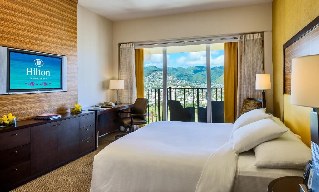 힐튼 와이키키 비치는 해변에서 도보로 1분 거리에 있습니다. 하와이의 매력을 간직한 힐튼 와이키키 비치는 전기 자동차 충전소와 같은 최신 시설을 구비하고 있습니다. 호텔은 와이키키 해변에서 매우 가까운 거리에 있습니다.