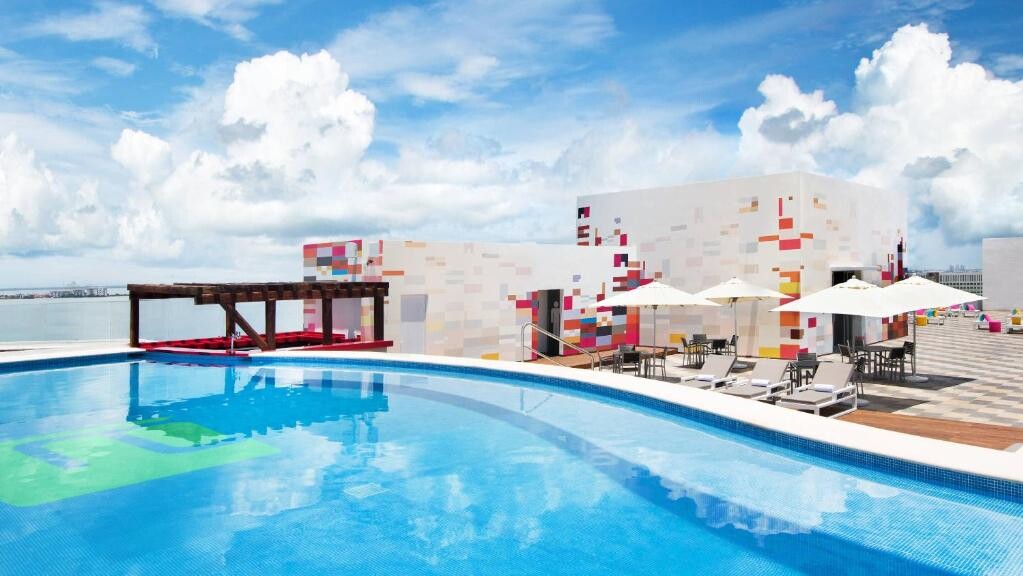 멋진 전경을 감상할 수 있는 옥상 정원, 한증실, 피트니스실 및 야외 수영장을 갖춘 Aloft Cancun은 포룸 비치(Forum Beach)에서 200m 떨어져 있으며, 말린 비치(Marlin Beach)에서 300m 거리에 있습니다. 이 숙박 시설은 칸쿤 컨벤션 센터와 연결되어 있습니다.