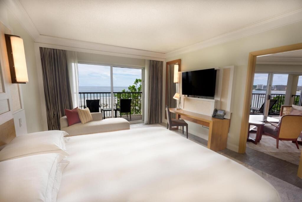 태평양의 백사장 위에 위치한 Hilton Guam Resort & Spa는 39,173평 규모의 무성한 열대 정원에 자리해 있으며, 투몬만(Tumon Bay)의 탁 트인 전망을 제공합니다. 리조트에는 5개의 수영장을 갖춘 워터파크와 5개의 테니스장이 마련되어 있어요.
