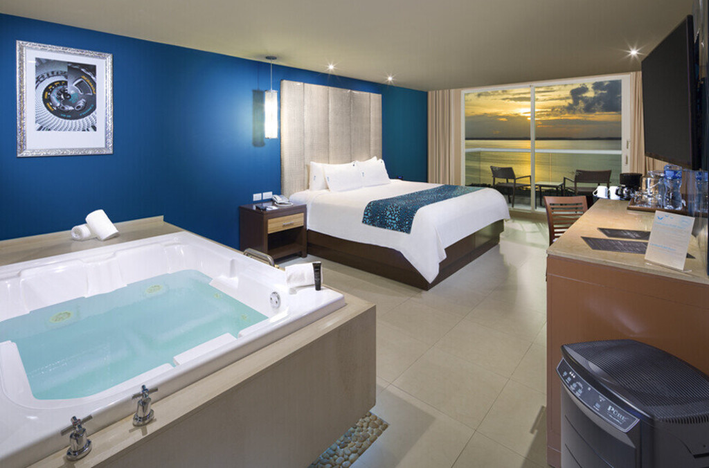 Hard Rock Hotel Cancun All Inclusive의 스위트룸은 무료 Wi-Fi 및 무료 음악 스트리밍 채널, 음료수, 생수, 주스, 현지 맥주로 채워진 미니바를 갖추고 있습니다.